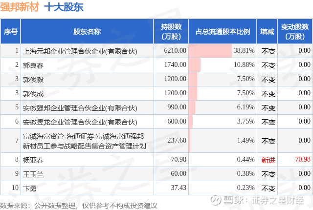 根据强邦新材2025年三季报公布的十大股东详情如下: