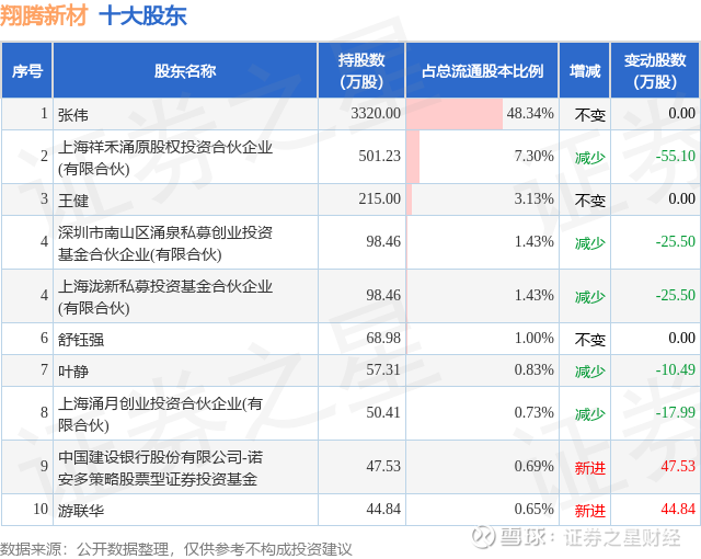 根据翔腾新材2025年三季报公布的十大股东详情如下:
