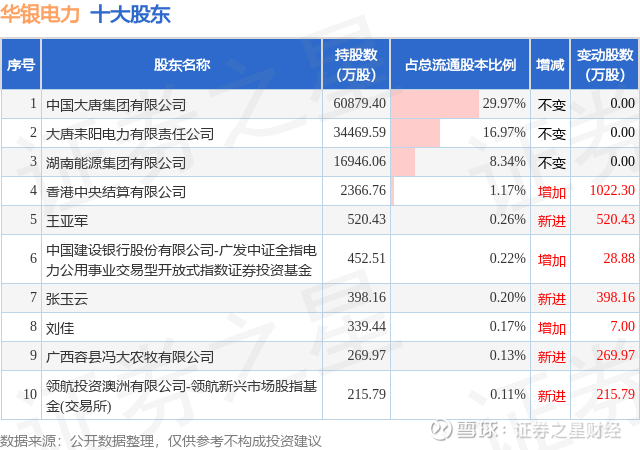 根据华银电力2025年三季报公布的十大股东详情如下: