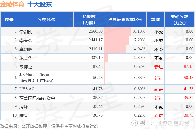 根据金陵体育2025年三季报公布的十大股东详情如下: