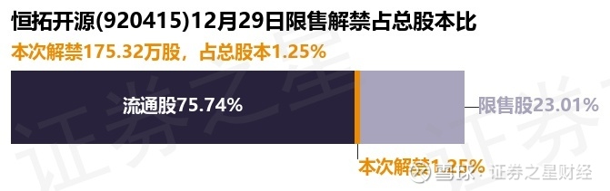 证券之星消息,根据市场公开信息整理,恒拓开源(920415)于12月29日将有175.32万股限售股份解禁,为公司其他类型,占公司总股本1.25%。(本次数据根据历史公告整理得出,实际情况以上市公司最新公告为准)本次解禁后,公司还有3233.82万股限售股份,占总股本23.01%。具体如下图所示: