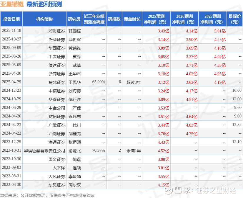 最新盈利预测明细如下:
