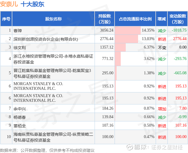 根据安奈儿2025年三季报公布的十大股东详情如下: