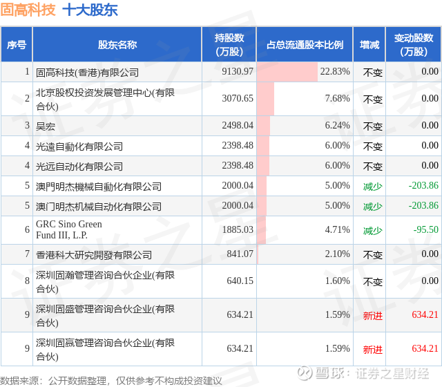 根据固高科技2025年三季报公布的十大股东详情如下: