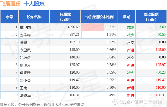 根据飞鹿股份2025年三季报公布的十大股东详情如下: