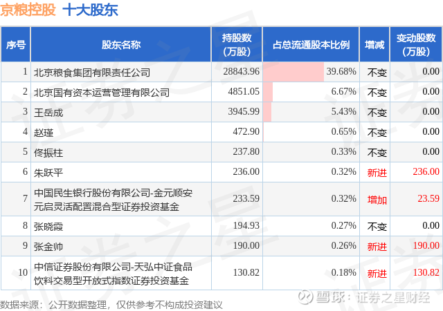 根据京粮控股2025年三季报公布的十大股东详情如下: