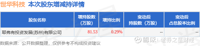 证券之星消息,1月4日世华科技发布公告《世华科技:关于控股股东一致行动人增持公司股份计划实施完毕暨增持结果公告》,其股东耶弗有投资发展(苏州)有限公司于2025年2月19日至2025年12月31日间合计增持81.53万股,占公司目前总股本的0.2908%,变动期间该股股价上涨81.53%,截止12月31日收盘报36.85元。