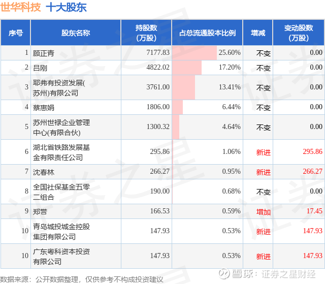 根据世华科技2025年三季报公布的十大股东详情如下: