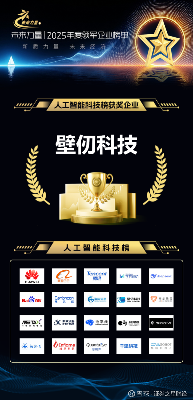 2025年12月31日,证券之星发布2025年“未来力量”领军企业榜单,壁仞科技(Biren Technology)凭借在高性能通用GPU芯片领域的重大技术突破、全栈软硬件生态建设及对AI产业的深度赋能,成功入选“人工智能科技榜”,彰显其作为中国高端算力芯片领军企业的硬核实力。