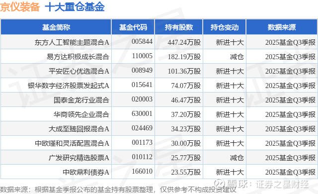重仓京仪装备的前十大公募基金请见下表: