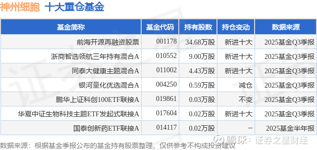重仓神州细胞的公募基金请见下表: