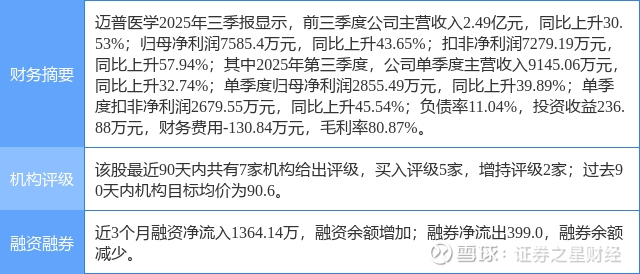 2025年11月13日,中邮证券研究员盛丽华,陈峻发布了对迈普医学的研报《业绩符合预期,收购易介拓宽天花板》,该研报对迈普医学给出“买入”评级。证券之星数据中心根据近三年发布的研报数据计算,该研报作者对此股的盈利预测准确度为76.51%。