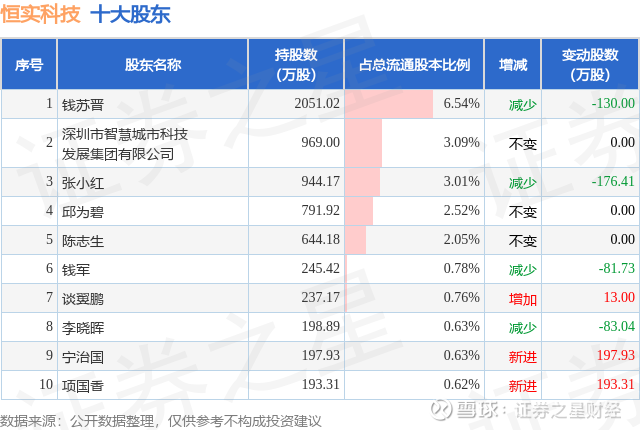 根据恒实科技2025年三季报公布的十大股东详情如下: