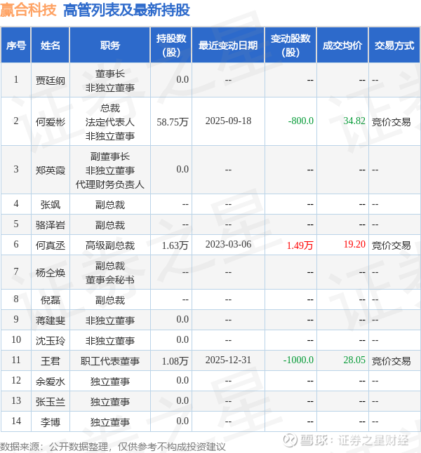 赢合科技近半年内的董监高及核心技术人员增减持详情如下: