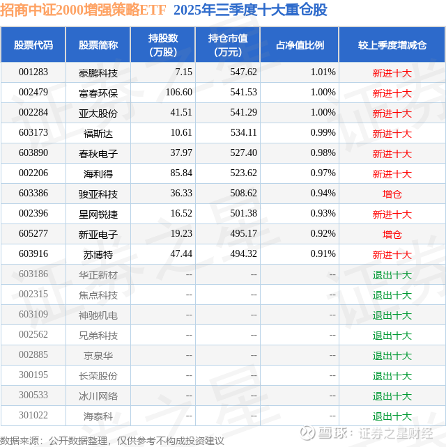 根据2025基金Q3季报公募基金重仓股数据,重仓该股的公募基金共10家,其中持有数量最多的公募基金为招商基金的招商中证2000增强策略ETF。招商中证2000增强策略ETF目前规模为5.4亿元,最新净值2.061(1月5日),较上一交易日上涨1.73%,近一年上涨67.14%。该公募基金现任基金经理为邓童。邓童在任的基金产品包括:招商中证500指数增强A,管理时间为2021年11月23日至今,期间收益率为25.58%;招商中证煤炭等权指数(LOF)C,管理时间为2021年12月2日至今,期间收益率为33.27%;招商大宗商品(LOF),管理时间为2021年12月2日至今,期间收益率为30.75%;招商北证50成份指数发起式A,管理时间为2022年12月22日至今,期间收益率为51.13%。