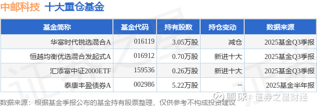 重仓中邮科技的公募基金请见下表: