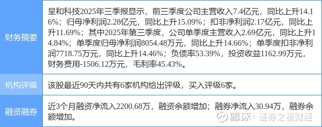 2025年11月9日,太平洋研究员王亮,王海涛发布了对呈和科技的研报《呈和科技2025年三季报点评:国产替代与海外扩张支撑公司稳健增长》,该研报对呈和科技给出“买入”评级。研报中预计2025-2027年EPS分别为1.49元、1.75元、2.08元。维持“买入”评级。证券之星数据中心根据近三年发布的研报数据计算,该研报作者对此股的盈利预测准确度为73.89%。