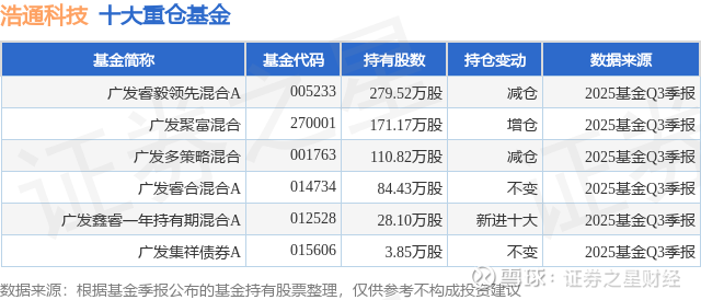 重仓浩通科技的公募基金请见下表: