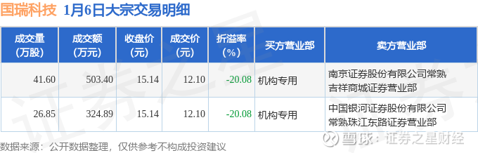 证券之星消息,1月6日国瑞科技发生大宗交易,交易数据如下: