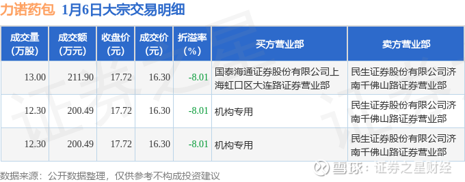 证券之星消息,1月6日力诺药包发生大宗交易,交易数据如下: