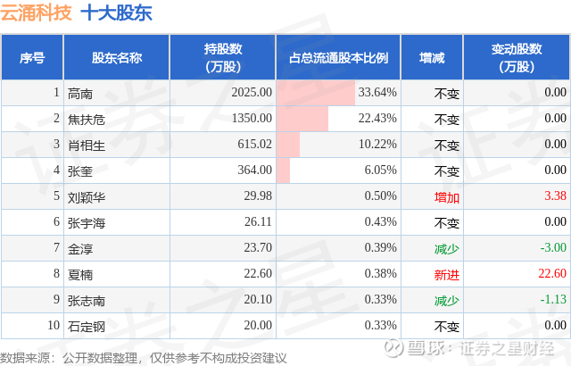 根据云涌科技2025年三季报公布的十大股东详情如下: