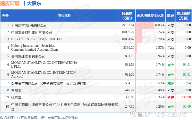 根据耀皮玻璃2025年三季报公布的十大股东详情如下: