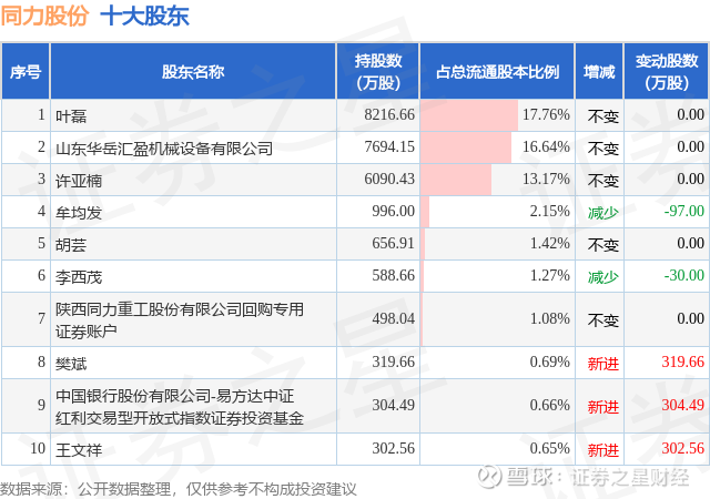 根据同力股份2025年三季报公布的十大股东详情如下: