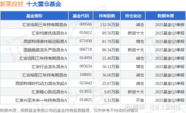 根据2025基金Q3季报公募基金重仓股数据,重仓该股的公募基金共10家,其中持有数量最多的公募基金为汇安基金的汇安泓阳三年持有期混合。汇安泓阳三年持有期混合目前规模为7.58亿元,最新净值1.3231(1月6日),较上一交易日下跌0.19%,近一年上涨51.66%。该公募基金现任基金经理为邹唯。邹唯在任的基金产品包括:汇安裕阳三年持有期混合,管理时间为2018年9月27日至今,期间收益率为127.39%;汇安行业龙头混合A,管理时间为2019年8月28日至今,期间收益率为144.44%;汇安均衡优选混合A,管理时间为2021年2月9日至今,期间收益率为11.16%。