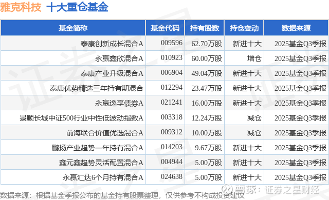 根据2025基金Q3季报公募基金重仓股数据,重仓该股的公募基金共26家,其中持有数量最多的公募基金为泰康基金的泰康创新成长混合A。泰康创新成长混合A目前规模为8.12亿元,最新净值1.3475(1月6日),较上一交易日上涨0.9%,近一年上涨59.24%。该公募基金现任基金经理为薛小波。薛小波在任的基金产品包括:泰康产业升级混合A,管理时间为2019年5月17日至今,期间收益率为176.49%;泰康优势精选三年持有期混合,管理时间为2021年8月31日至今,期间收益率为19.32%。