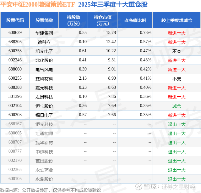 平安中证2000增强策略ETF的前十大重仓股如下:
