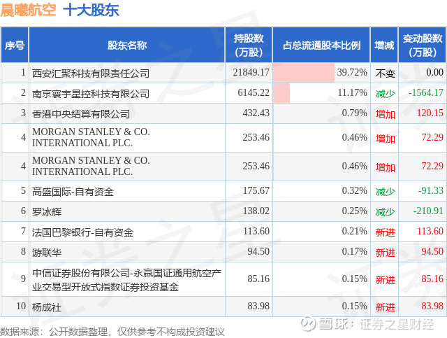 根据晨曦航空2025年三季报公布的十大股东详情如下: