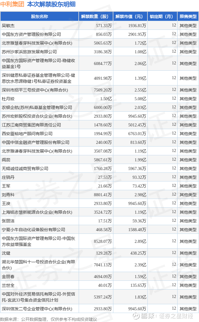 本次解禁涉及股东明细见下表: