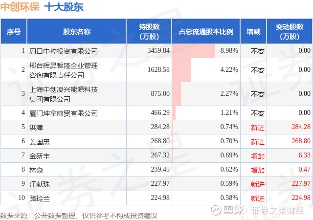 根据中创环保2025年三季报公布的十大股东详情如下: