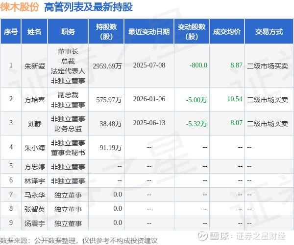 徕木股份近半年内的董监高及核心技术人员增减持详情如下: