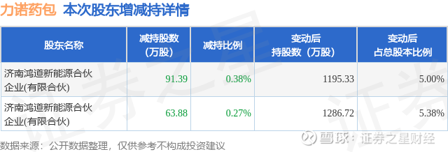证券之星消息,1月9日力诺药包发布公告《力诺药包:简式权益变动报告书》,其股东济南鸿道新能源合伙企业(有限合伙)于2025年12月25日至2026年1月8日间合计减持155.27万股,占公司目前总股本的0.6495%,变动期间该股股价上涨3.31%,截止1月8日收盘报18.44元。