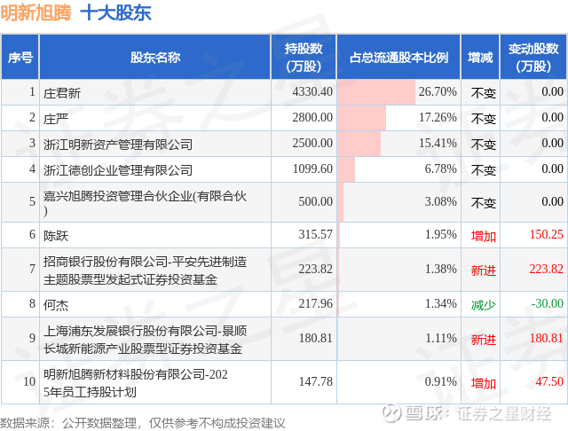 根据明新旭腾2025年三季报公布的十大股东详情如下: