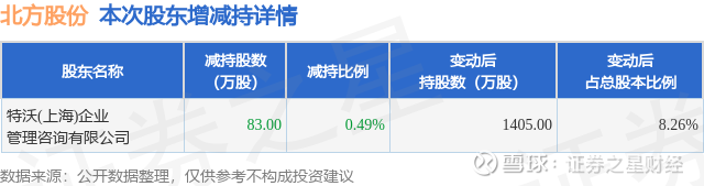证券之星消息,1月9日北方股份发布公告《北方股份:内蒙古北方重型汽车股份有限公司关于持股5%以上股东减持计划实施完毕暨减持股份结果公告》,其股东特沃(上海)企业管理咨询有限公司于2026年1月9日合计减持83.0万股,占公司目前总股本的0.4882%,变动期间该股股价上涨0.72%,截止1月9日收盘报27.97元。