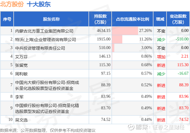 根据北方股份2025年三季报公布的十大股东详情如下: