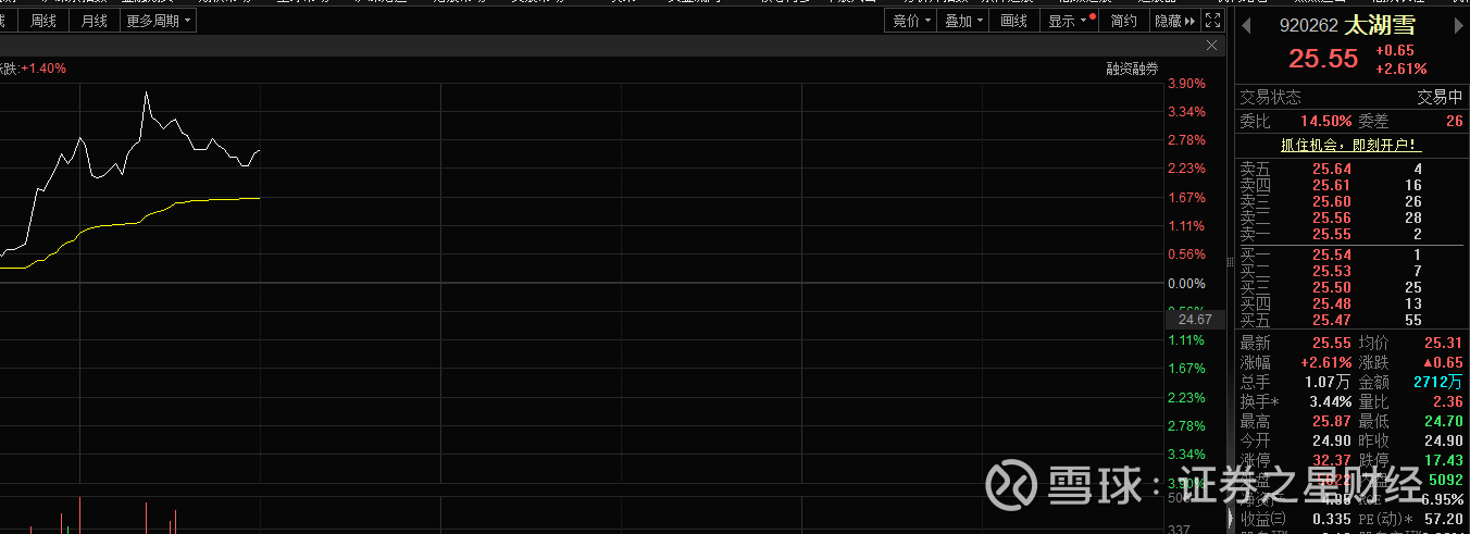 1月12日,太湖雪(920262)股价上涨,盘中涨幅一度接近4%。