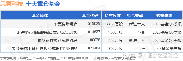 根据2025基金Q3季报公募基金重仓股数据,重仓该股的公募基金共3家,其中持有数量最多的公募基金为华夏基金的华夏稳增混合。华夏稳增混合目前规模为12.0亿元,最新净值4.062(1月9日),