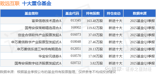 重仓致远互联的公募基金请见下表: