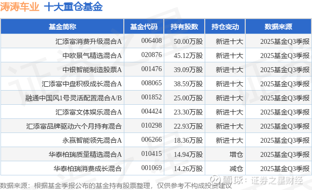 根据2025基金Q3季报公募基金重仓股数据,重仓该股的公募基金共48家,其中持有数量最多的公募基金为汇添富基金的汇添富消费升级混合A。汇添富消费升级混合A目前规模为29.53亿元,最新净值2.0238(1月9日),较上一交易日上涨1.16%,近一年上涨29.31%。该公募基金现任基金经理为胡昕炜。胡昕炜在任的基金产品包括:汇添富消费行业混合,管理时间为2016年4月8日至今,期间收益率为135.86%;汇添富价值创造定开混合,管理时间为2018年1月19日至今,期间收益率为82.49%;汇添富民安增益定开混合A,管理时间为2019年9月17日至今,期间收益率为51.76%。