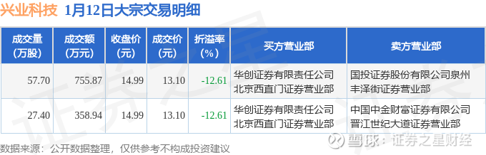 证券之星消息,1月12日兴业科技发生大宗交易,交易数据如下: