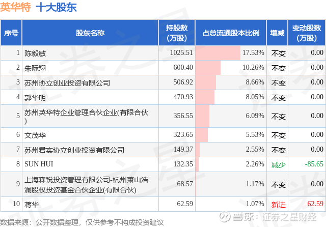 根据英华特2025年三季报公布的十大股东详情如下: