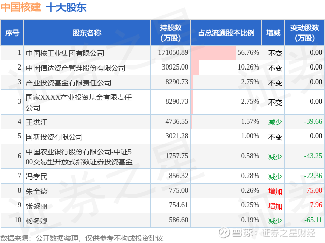 根据中国核建2025年三季报公布的十大股东详情如下: