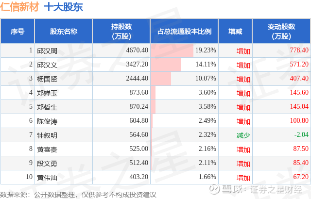 根据仁信新材2025年三季报公布的十大股东详情如下: