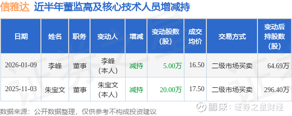 信雅达近半年内的董监高及核心技术人员增减持详情如下: