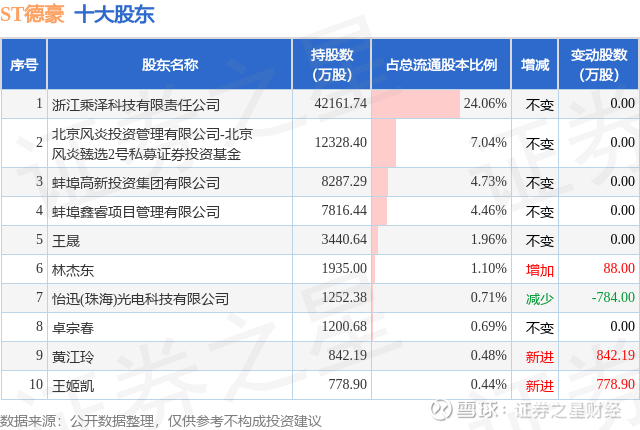 根据ST德豪2025年三季报公布的十大股东详情如下:
