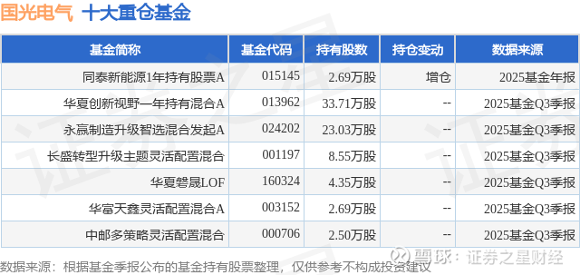 重仓国光电气的公募基金请见下表: