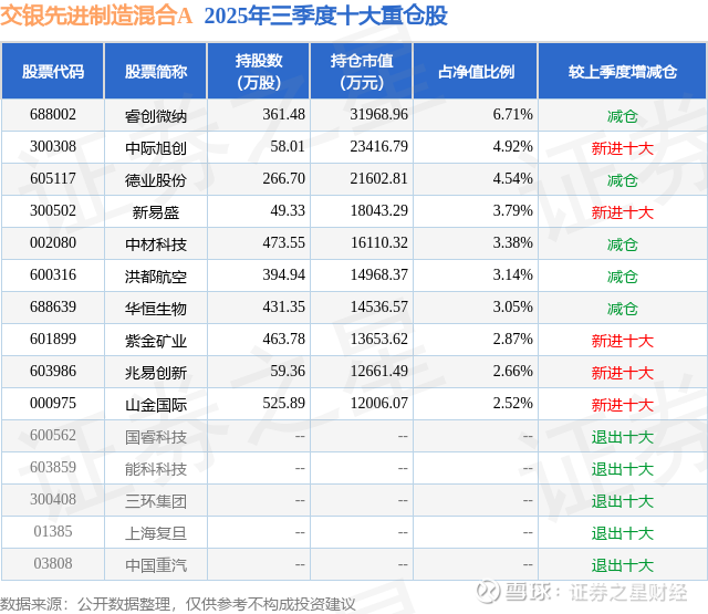 根据2025基金Q3季报公募基金重仓股数据,重仓该股的公募基金共4家,其中持有数量最多的公募基金为交银施罗德基金的交银先进制造混合A。交银先进制造混合A目前规模为44.97亿元,最新净值5.6797(1月12日),较上一交易日上涨0.67%,近一年上涨60.53%。该公募基金现任基金经理为郭若。郭若在任的基金产品包括:交银启信混合发起A,管理时间为2023年3月1日至今,期间收益率为48.78%;交银精选混合,管理时间为2025年7月19日至今,期间收益率为42.11%;交银远见成长混合A,管理时间为2025年11月17日至今,期间收益率为0.65%。